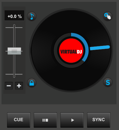 In addition to these Basic Controls, there are 4 separate buttons available around the outside of the Jog Wheel that provide additional features that can be toggled on and off. These features are enabled when the button is the same color as the deck and disabled when the button is greyed out.