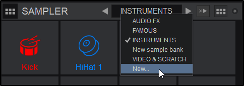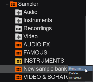Clicking this option will instantly create a bank (without the option to name it) for on the fly convenience and will be stored in the Sampler folder list as New bank. The bank can later be renamed or deleted by using the above steps.
