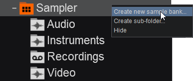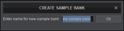 Right-click on the folder and select Create new sample bank... - A pop-up box will appear to give the new sample bank a name. Type in the preferred name for the bank and click OK or press enter on your keyboard.