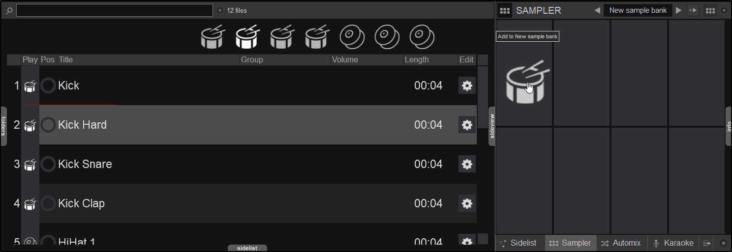 Remove from File List Remove from Sampler Sideview