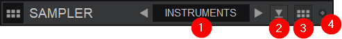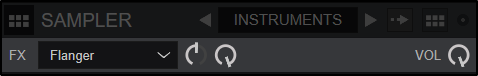 Full - Large image with no textedit in Sample Editor Provides a list of all samples in the bank to instantly open and edit in the Sample Editor. Show effects Provides an FX Tool Bar at the top of the Sampler to apply and control effects as well as the Sampler's volume.