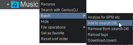 If you don’t wish to have a specific folder or a sub-folder included in your Search Database, simply right-click on any folder and choose Batch Remove from Search DB. VirtualDJ will then remove the tracks of that folder (and its sub-folders) from the Search Database.