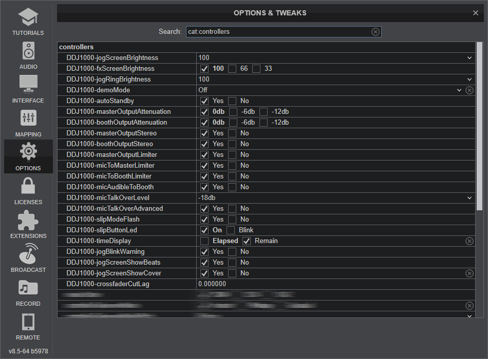 All the settings that are exclusive to Pioneer DDJ-1000 will be presented on top, starting with the DDJ1000- acronym:
