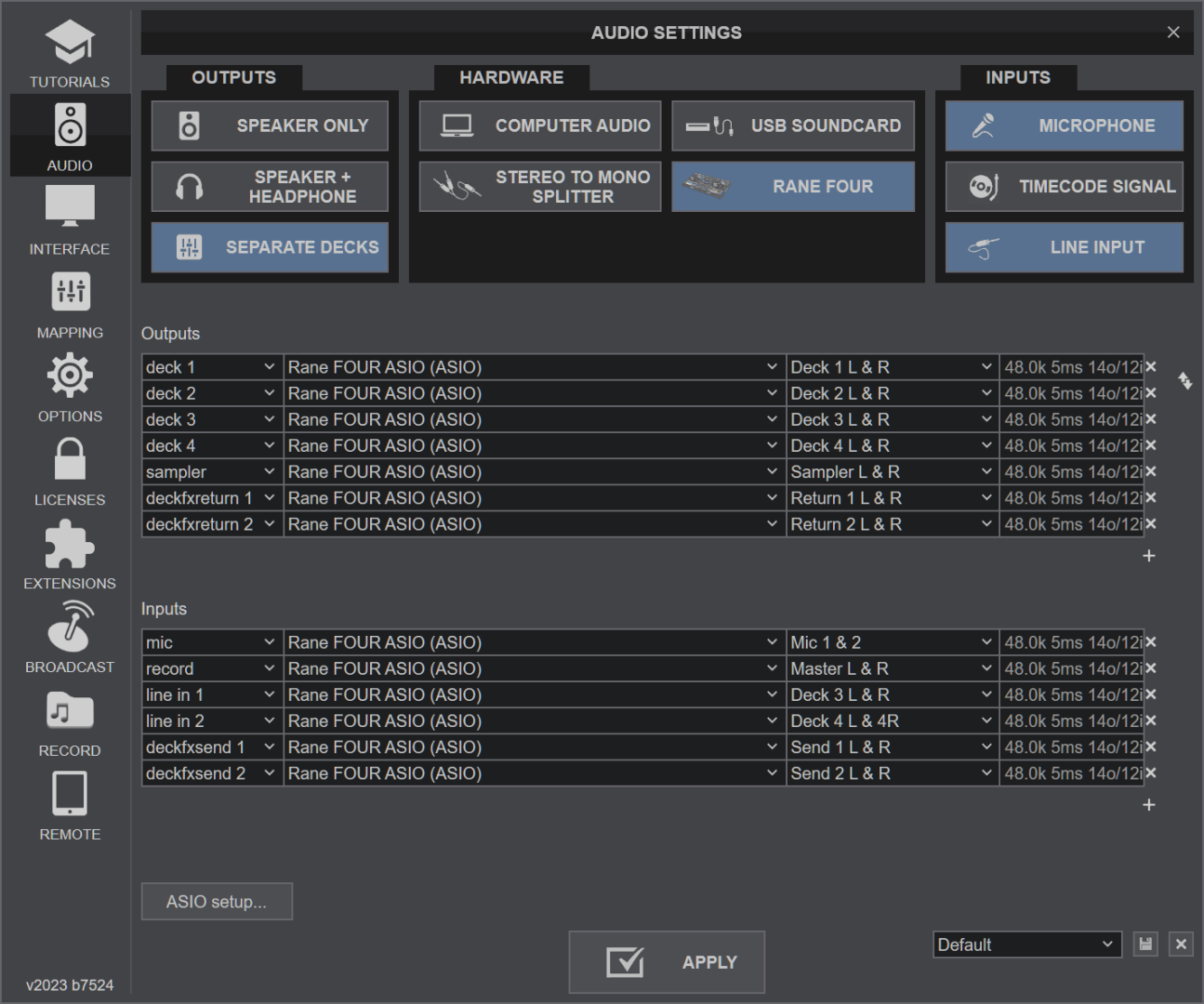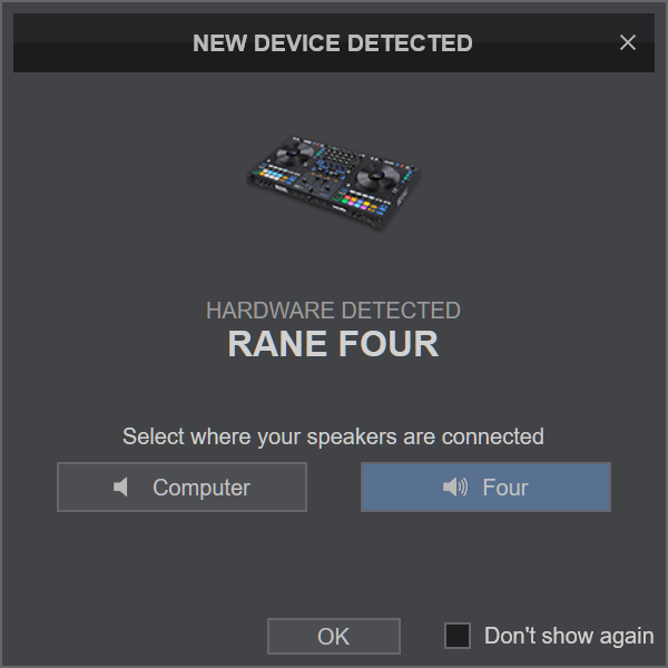 Click on the "Four" button in order VirtualDJ to apply the pre-defined audio configuration for your device.
