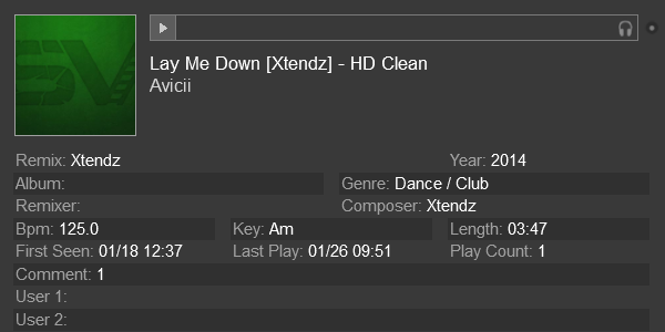<colors background="#393939" stripes="#303030" text="#FFFFFF" label="#A0A0A0" artist="#D5D5D5" title="#FFFFFF"/>