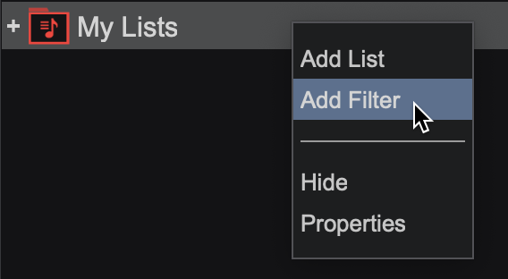 Right-click on any Filter Folder to reveal it’s context menu: