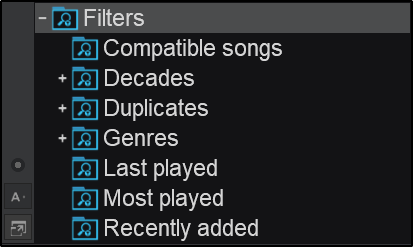 To get you started, VirtualDJ comes with a few (by default) in the blue folder listed as Filters which is nested in the Ideas Folder. These Filters are commonly used and make finding and organizing your music library a whole lot easier.