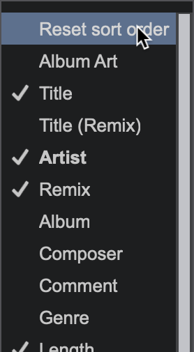 Right-Clicking on the Field Header to display the menu of available fields and selecting Reset sort order will revert the list to it's original sorted order.