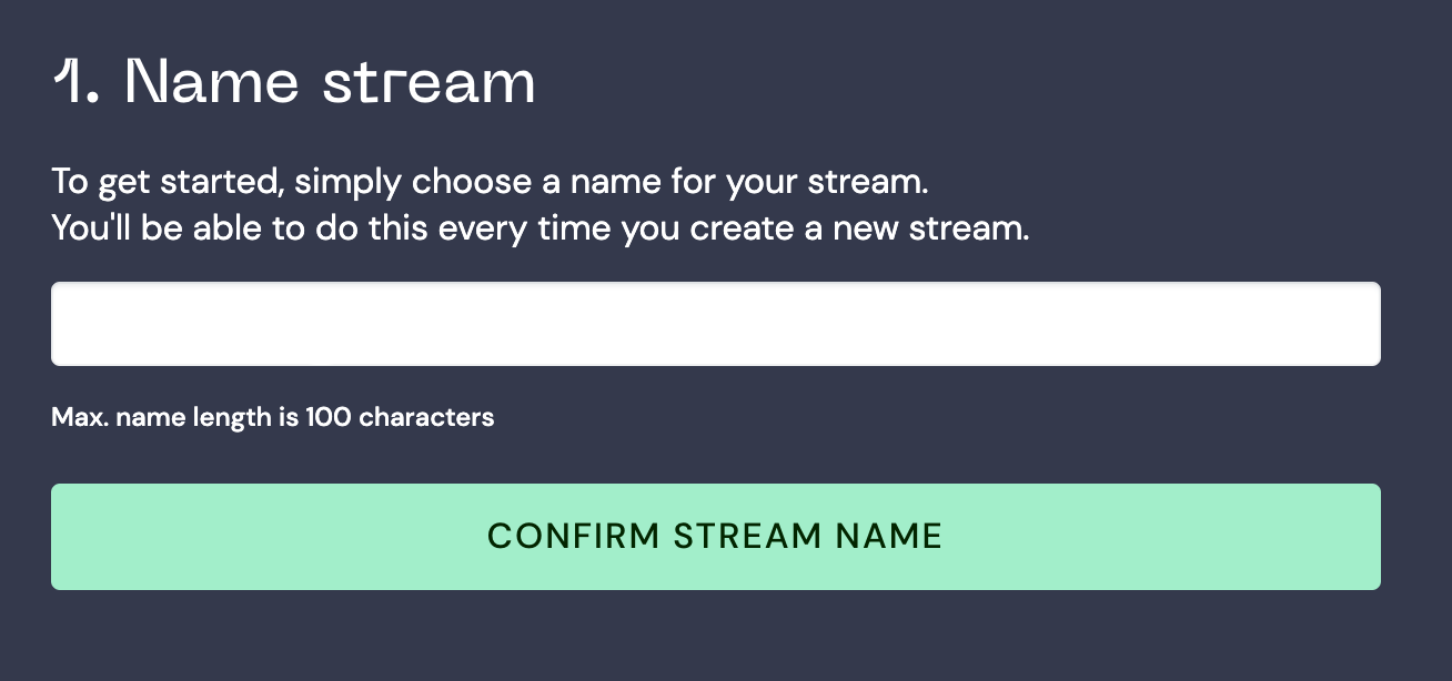 Name your Live Stream and click Confirm. (Please note that you cannot change the name of the stream once it's confirmed)