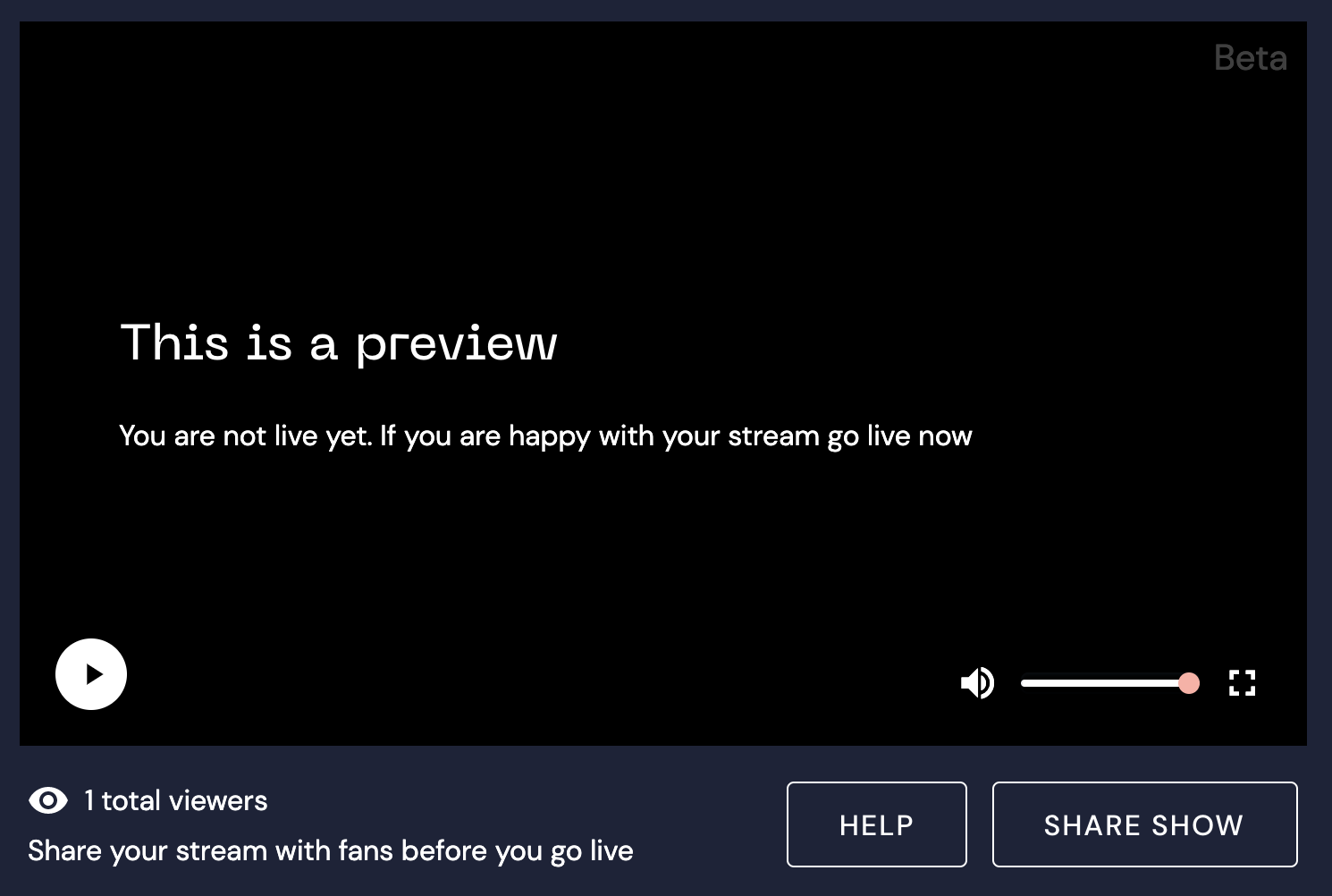 Share the link to your stream to your fans, at social media platforms. Click the "Share Now" button to get the link to use.