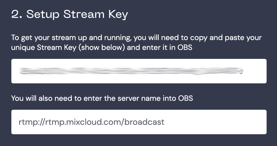 - While logged in to your Mixcloud profile, go to https://www.mixcloud.com/live/new .