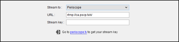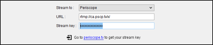 - Click on the Go to link below to get the Stream Key from your Periscope account ( https://www.periscope.tv/account/producer )