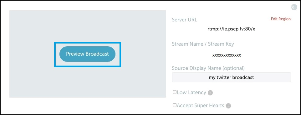 - After a few seconds the Periscope Producer page https://www.periscope.tv/account/producer will offer a Broadcast Preview button.