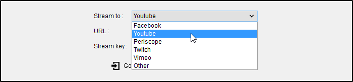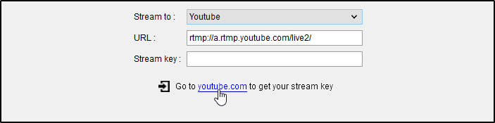 • Select the Youtube option from the Stream to drop-down list