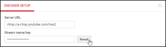 • In your Youtube Dashboard, scroll down to the Encoder Setup section and click on the Reveal button to get your Stream Key