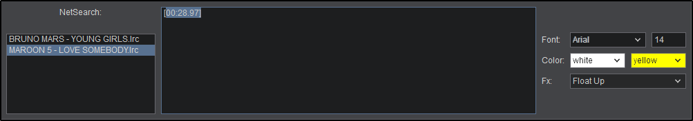 In the left box, search will try to automatically retrieve the results for the selected file. Clicking on the result will automatically populate the right box with the lyrics and time stamps.