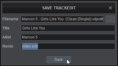 - SAVE. Creates a .vdjedit file in the same folder as the original track and a special icon will be applied to this file (see File Icons)