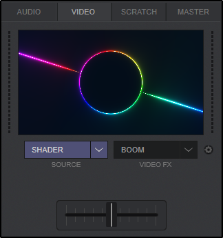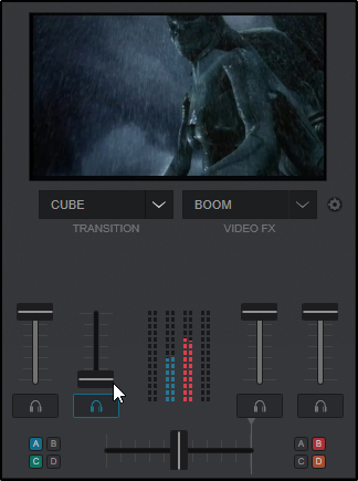 When only one deck is playing and/or the Volume fader of the other deck is lower than 20%, the Video crossfader is automatically set to the side of the playing deck.