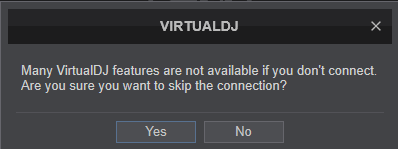 When you first connect a unit which comes with VirtualDJ LE and enter your LE keycode, you will get a 30 day trial period with all the features. In order for this to happen, you will need to login with a VirtualDJ account, so that the keycode can be registered. If you have skipped the login process, a window will prompt you to connect.