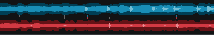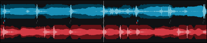 - DECK WAVEFORMS. Displays a detailed view of the audio information indicated by height and color as well as the tracks playhead indicating its position. The overall track gain (loudness) is indicated by the height of the waveform with the highest parts being the loudest and the shorter portions being softer. If Beats or Shapes is the selected waveform, the decks will display the traditional blue and red waveforms with a beat indicator underneath. If Colors is the selected waveform type, the waveform’s color can be changed to 5 separate options in Settings Options under coloredWaveforms.