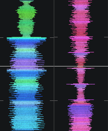 - SCRATCH WAVEFORMS (Essentials & Pro Layouts). Displayed in the Scratch Mixer and run vertically. Their main purpose is to pinpoint areas of the track that will be scratched to improve accuracy. The Scratch Waveforms can be zoomed in and out by using a wheel mouse, and just like the Deck Waveforms the color can be changed to 5 separate options in Settings Options under coloredWaveforms.